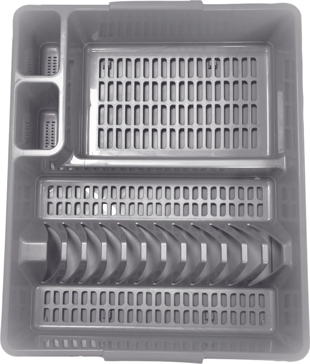Dit afdruiprek met een onderzetter heeft een tijdloze design en is geschikt voor diverse soorten servies en bestek. De onderzetter heeft een kliksysteem waardoor de afdruiprek niet verschuift in de onderzetter. Het afdruiprek is gemaakt van 1e graad kunststof en is een mooie aanvulling in uw keuken.