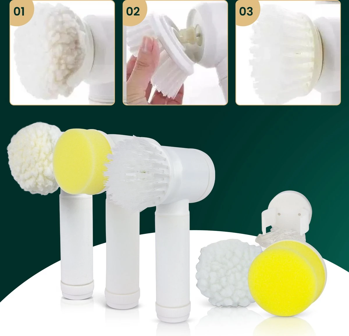Apeiron Elektrische Schoonmaakborstel – Poetsmachine – Poliermachine – Schrobborstel – Handborstel – Werkborstel – Schrobber – Boorborstel – Wasborstel – Schoonmaakmiddelen – Reinigingsborstel – 3 Opzetstukken