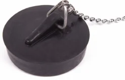 Benson aanrecht wasbak gootsteen afsluitdoppen gemaakt van rubber. gootsteen dop met RVS ketting van 30cm om je wasbak/wastafel in keuken en badkamer af te sluiten.