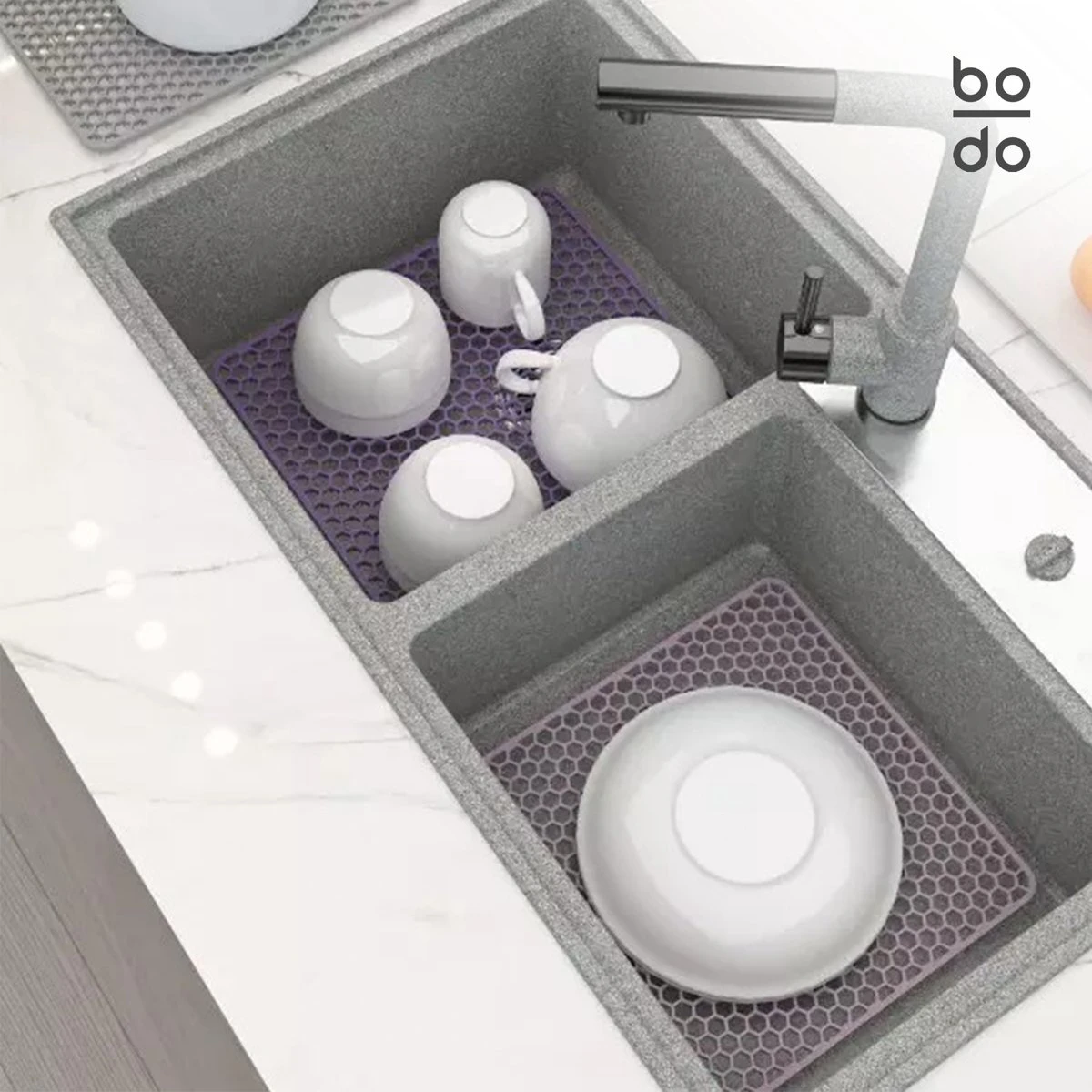 BODO Gootsteenmat Siliconen Donker Grijs – 30.5 X 30.5 Cm – Keuken Accessoires – Gootsteen Beschermer – Onderzetters Siliconen – Anti Kras – Gootsteen Accessoires