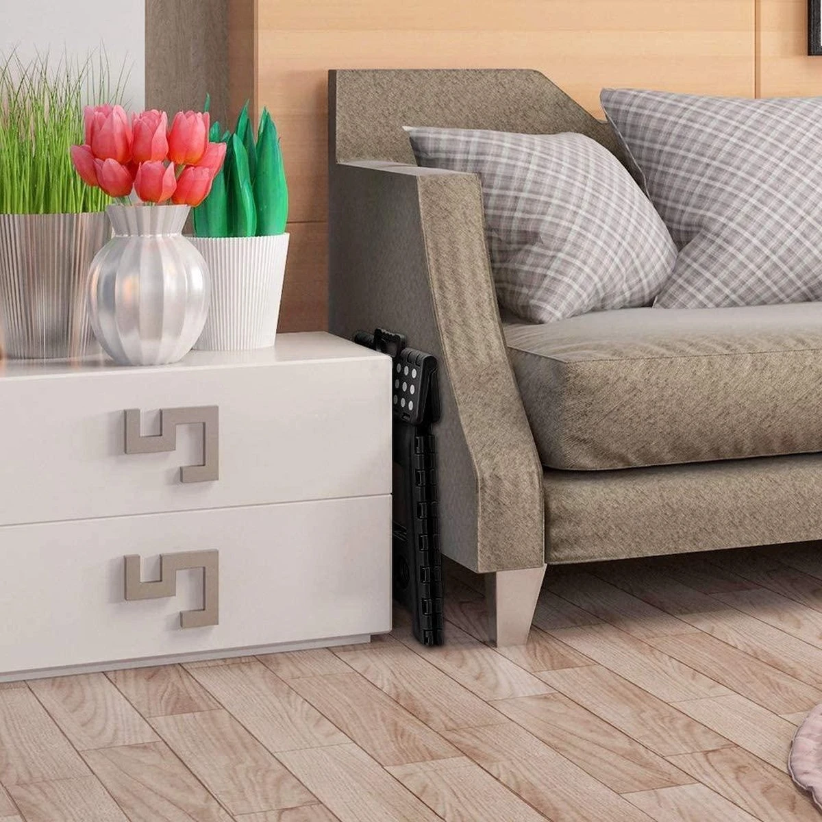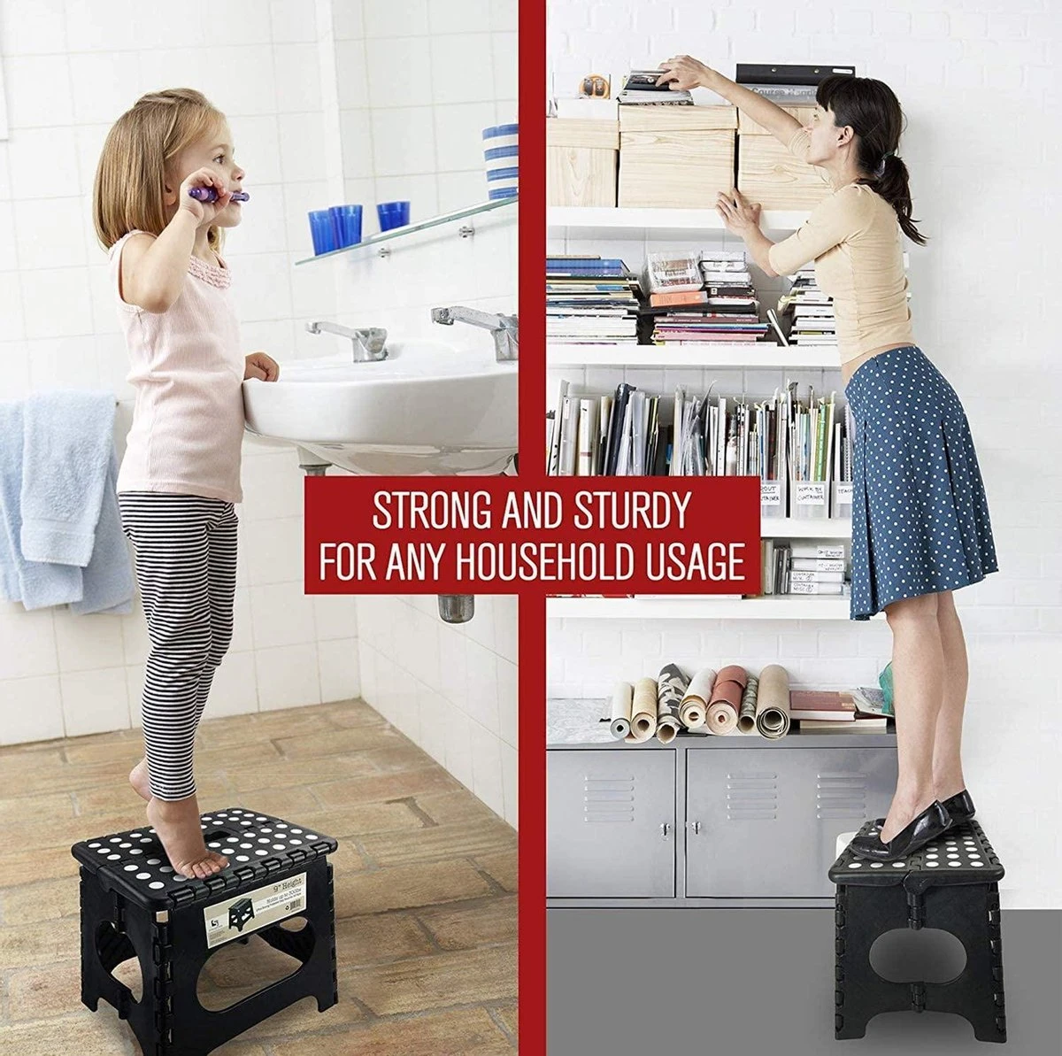 Doordat het krukje vouwbaar is, is het heel makkelijk op te bergen zodat het product niet in de weg staat. Verder is het krukje niet heel groot waardoor het zelfs uitgeklapt weinig ruimte in neemt als het ergens staat. Ook heeft het een sterk ontwerp omdat het krukje een gewicht tot 130 kilogram kan houden. Het wordt ook geleverd met een ingebouwde handgreep in Curve-vorm, die uw handen beschermt tegen krassen. Gemakkelijk te dragen, zodat u de opstapkruk overal mee naartoe kunt nemen.