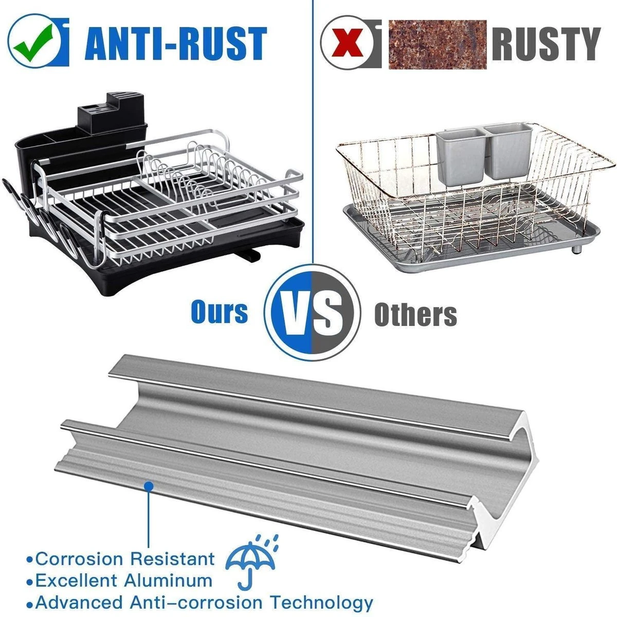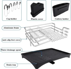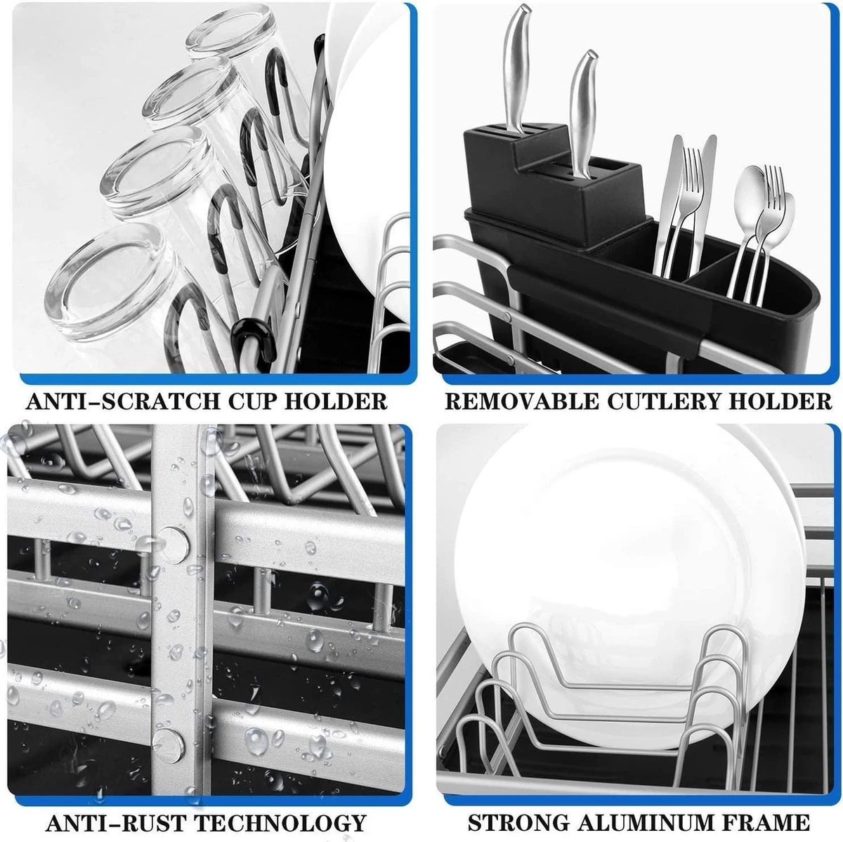 Constructie: 100% roestbescherming en een sterk frame – het aluminium serviesrek met sterke steunstangen is niet alleen roestvrij, maar vervormt ook niet.