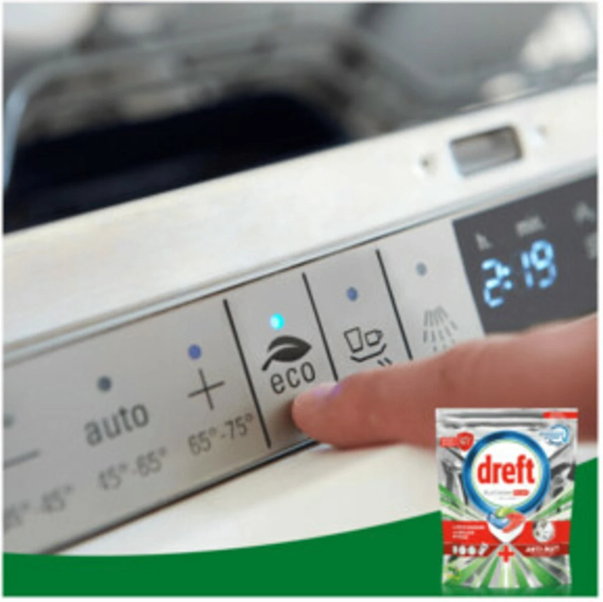 Dreft Platinum Plus All in One vaatwascapsules zorgen voor een reiniging als nieuw, het geeft je Dreft’s beste collectie voor het reinigen van hardnekkig voedsel en het helpt zelfs de dofheid weg te nemen die in de loop van de tijd is opgebouwd, om de oorspronkelijke glans van je vaatwerk te herstellen. Dreft Platinum Plus geeft je een uitmuntende reiniging en verwijdert hardnekkige voedselvlekken, zelfs in de testconditie van een korte cyclus. Dus, als je weinig tijd hebt, is er niets aan de hand. Schakel over op kort. Dreft combineert vloeistof en poeder in één krachtige capsule. Het ultra-oplosbare zakje lost snel op en werkt goed in korte cycli omdat het snel begint te reinigen om de klus klaar te krijgen. En ze zijn gemakkelijk te gebruiken. Plaats ze gewoon in het doseerbakje van je vaatwasser, met verpakking. Schakel over op de korte cyclus* en bespaar tijd, energie en water in vergelijking met een gewone, standaard cyclus!