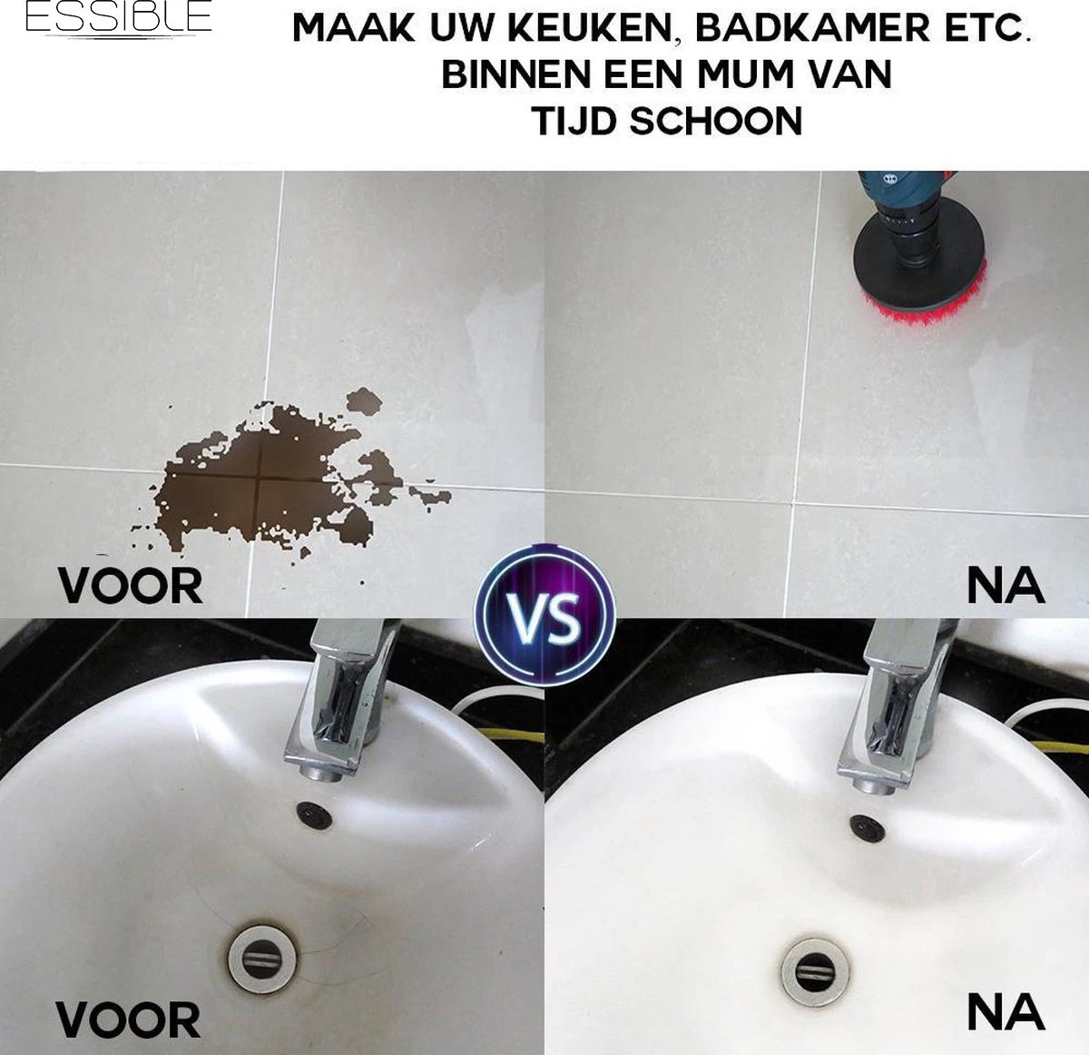 Met de drie verschillende borstels kunt u uw badkamer, bekleding, vloer, tapijt, douche, badkamer, toilet reinigen. De Nylon borstels zullen de oppervlakken niet beschadigen. Door de verlengde borstels kunt u makkelijk plekken bereiken die normaal lastig te bereiken zijn. Denk bijvoorbeeld aan pannen, het fornuis, de auto, enz.