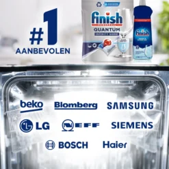 - Meest aanbevolen reinigingsmiddel, op basis van gerenommeerde vaatwasmachine- en glasfabrikanten die Finish aanbevelen.