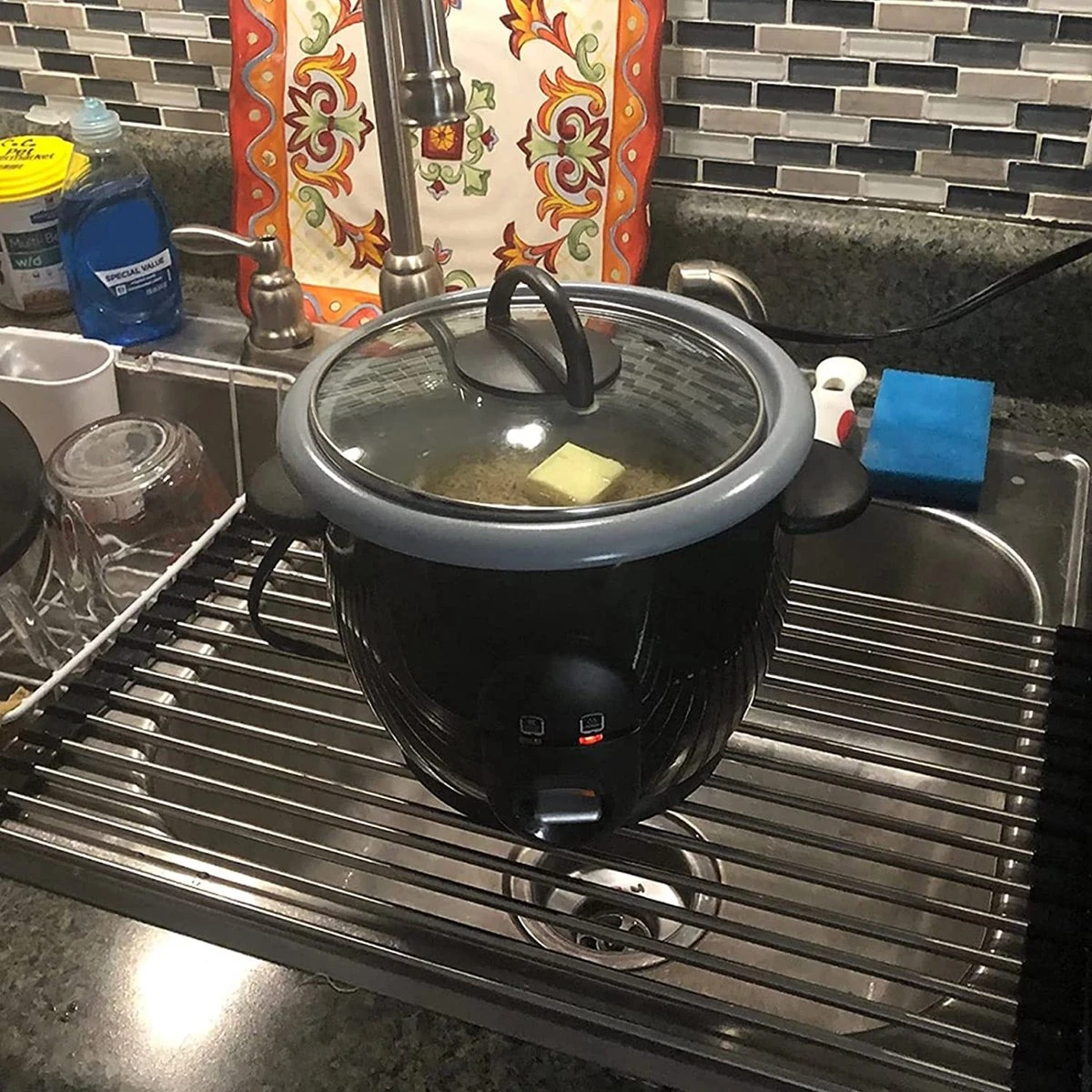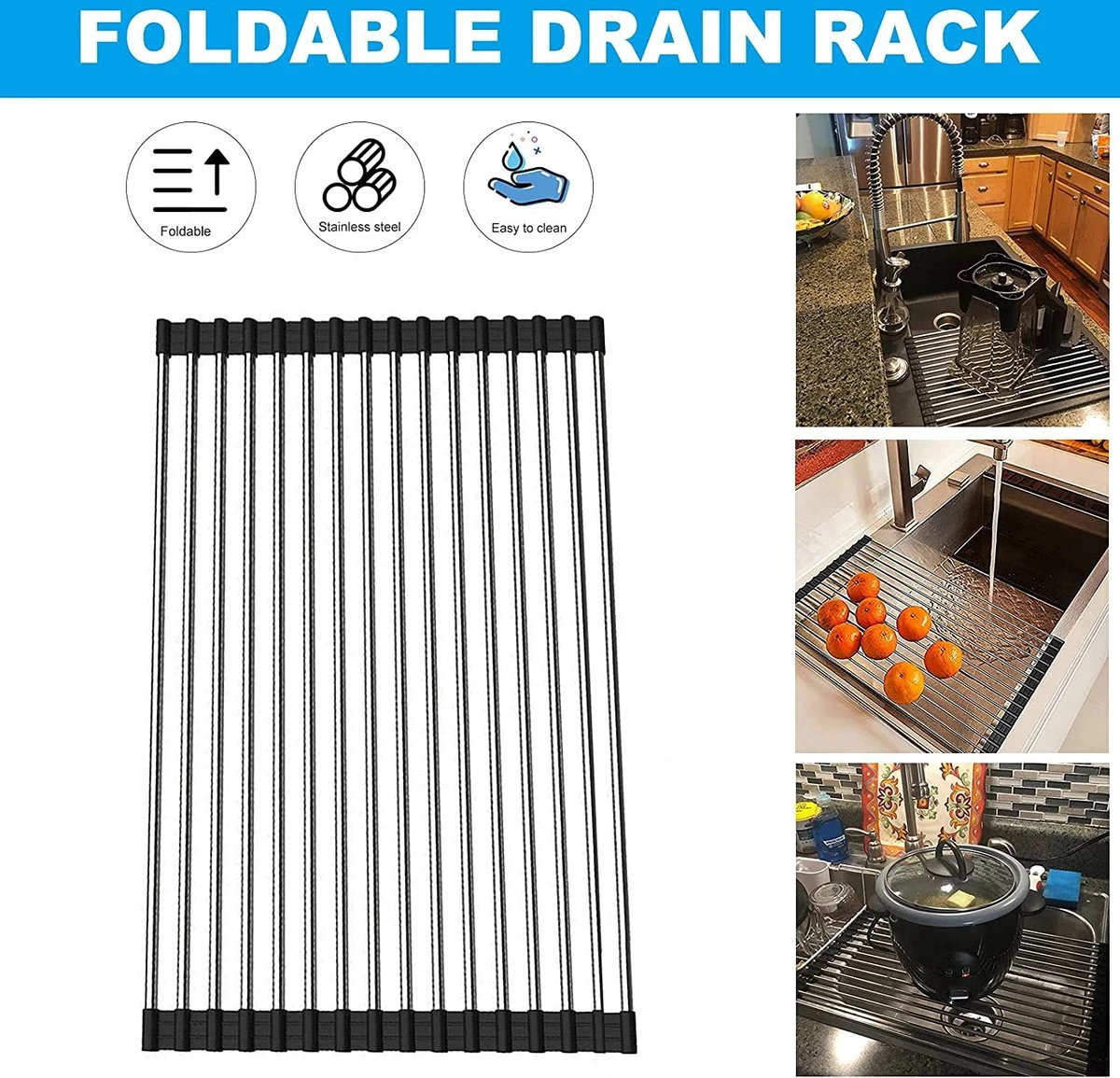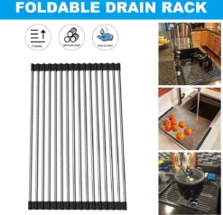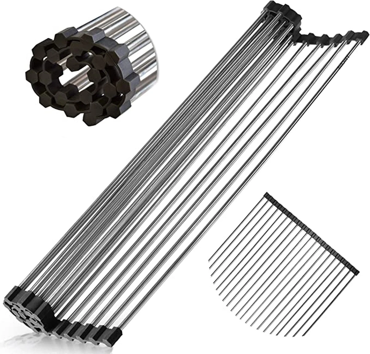 IBright Oprolbare Afdruiprek – Pannen Rooster Hittebestendig – Afdruiprooster – Pannenonderzetter – RVS Zwart