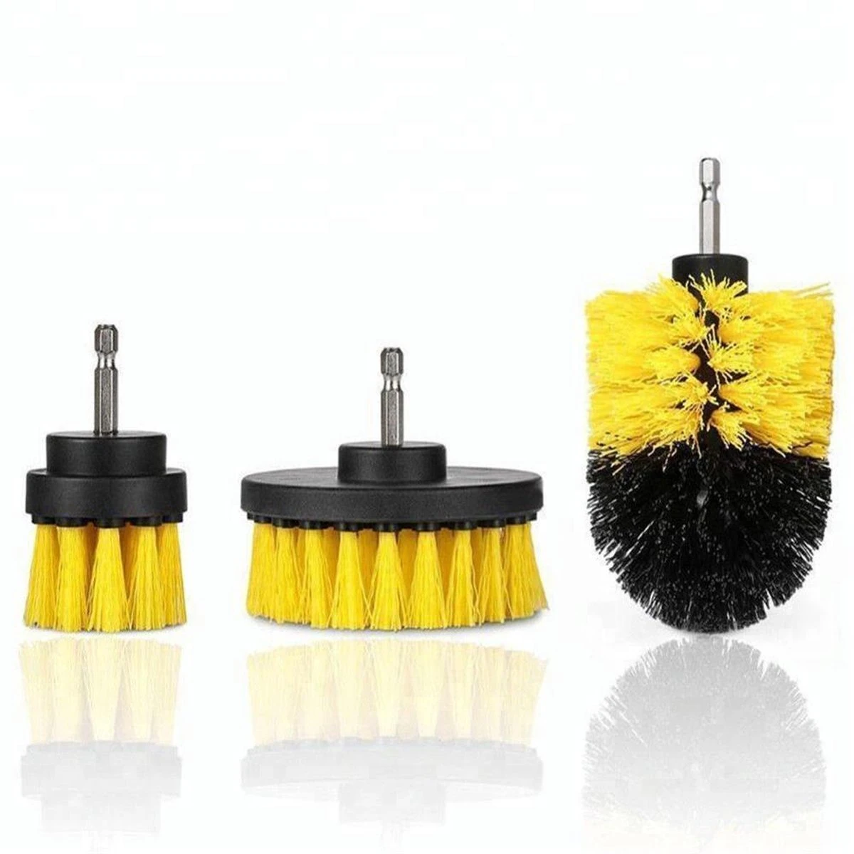 Cet ensemble de 3 types différents de brosses bleues peut être utile (surtout lorsqu’il est utilisé en combinaison avec un agent de nettoyage bien certifié) et s’adapte à de nombreuses perceuses sans fil grâce à la connexion carrée (forme de clitoris standard).
