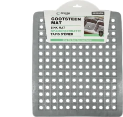 Gootsteenmat PVC Vierkant grijs 25x29cmVoor behoud van uw gootsteen en ter bescherming van uw glazen, servies ,pannen en andere spullen die u in de gootsteen legt.Dia.: 25x29cmMateriaal: PVC