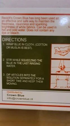 Het ouderwetse onovertroffen blauwsel maakt uw witte wasgoed extra wit.
