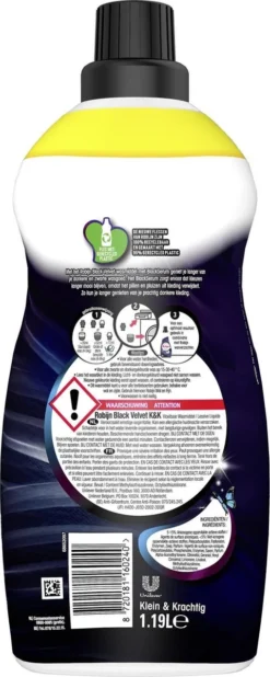 Robijn Klein & Krachtig Classics Black Velvet Vloeibaar Wasmiddel bevat 80% biologisch afbreekbare ingrediënten en is speciaal ontwikkeld voor de donkere en zwarte was.