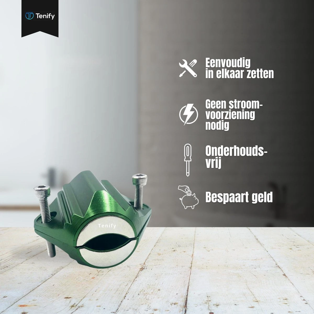 De waterontharder creëert een krachtig magnetisch veld van 7800 Gauss. Hierdoor zorgt de Tenify magnetische waterontharder ervoor dat mineralen, calcium en magnesium niet meer kunnen kristalliseren tot calciumcarbonaat (kalkaanslag). De bestaande kalkaanslag in de waterleidingen wordt geleidelijk afgebroken. De kalk vermindert tot wel 90%. Dit zorgt voor schoner, gezonder en milieuvriendelijkere water. Tevens ook een lagere energierekening en een langere levensduur van (huishoudelijke) apparaten.