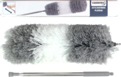 Met deze uitschuifbare en buigbare plumeau bereik je zelfs de lastigste en hoogste plekjes in huis. De stang is uitschuifbaar tot 2 meter 45 en de kop van de plumeau kun je in allerlei bochten buigen zodat je zelfs bovenop de hoogste kast of in de nok van je huis kunt stoffen. De plumeau vangt het stof op en deze kun je gemakkelijk uitspoelen onder de kraan!